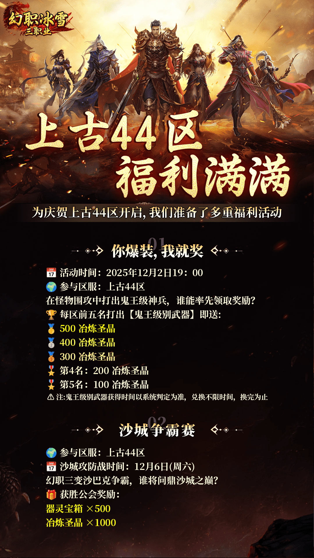 冰雪传奇幻变三职业:“上古44区”开启,限时多重福利活动